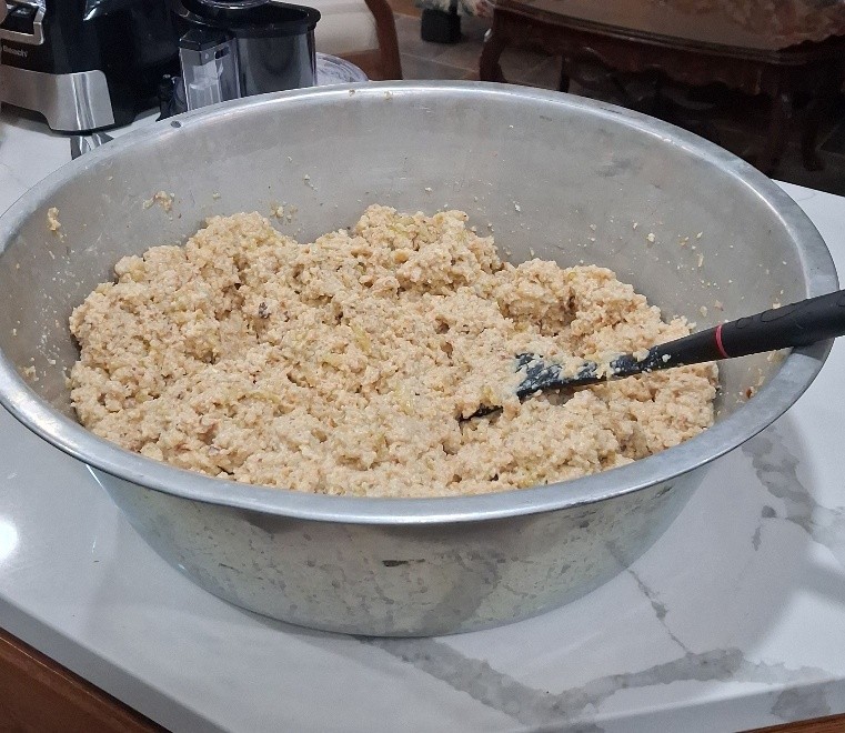 Submitted by Julia Gioiello This was Mom’s “dressing pan.” Woe to the one who used it for something else (John A. Gioiello, that would be you). It has an inside diameter of 16 inches. The picture shows a double batch of the dressing recipe. Mom would always double, triple, etc. the recipe. Might as well… Continue reading AUNT VIRGINIA’S CORNBREAD DRESSING